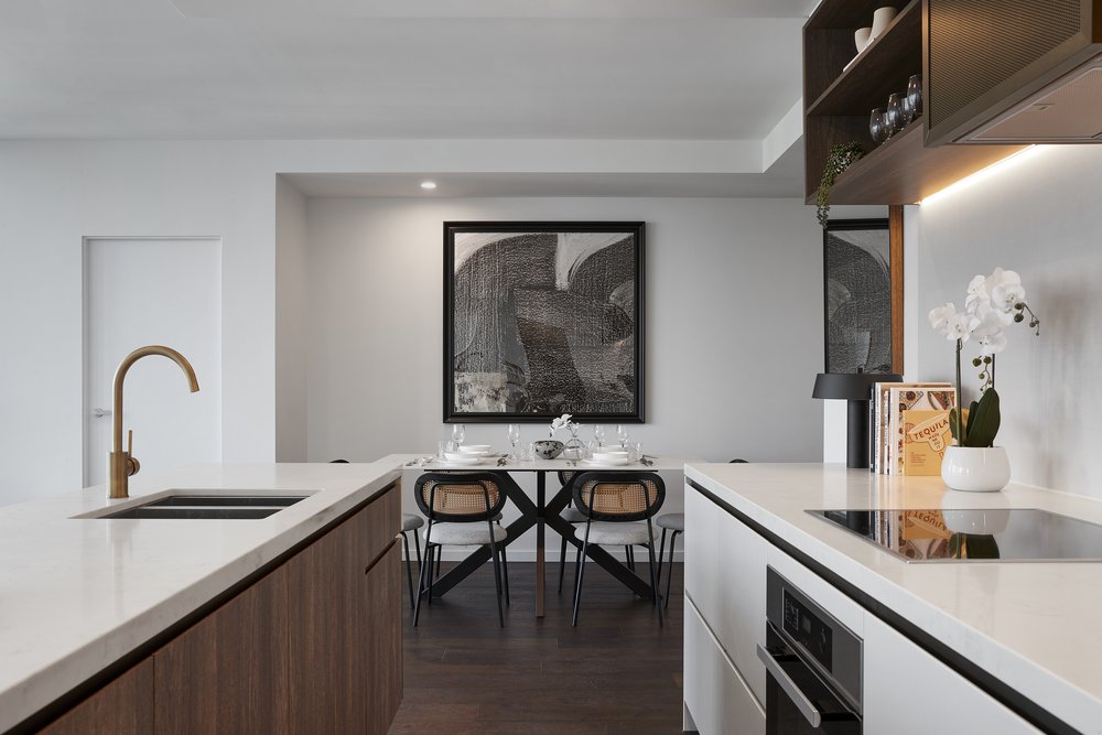 Với thiết kế tinh tế, các căn hộ tại UNO sử dụng bề mặt đá tự nhiên, các chi tiết kim loại đục lỗ mang đến không gian nội thất thoáng đãng, và các thiết bị Miele cao cấp, đầy sang trọng.