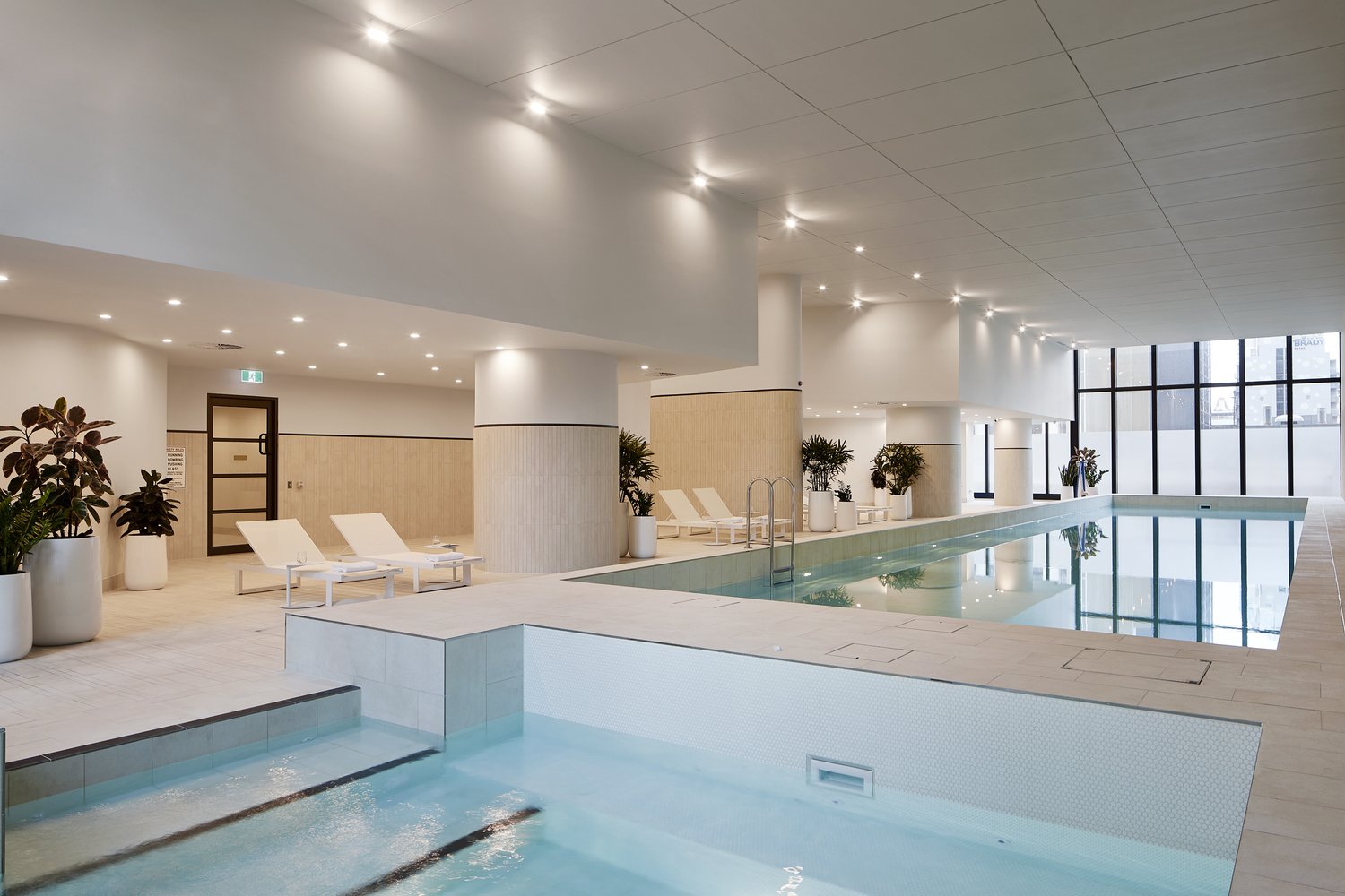 Bể bơi riêng biệt từng tòa, với phòng tắm hơi và phòng xông hơi
