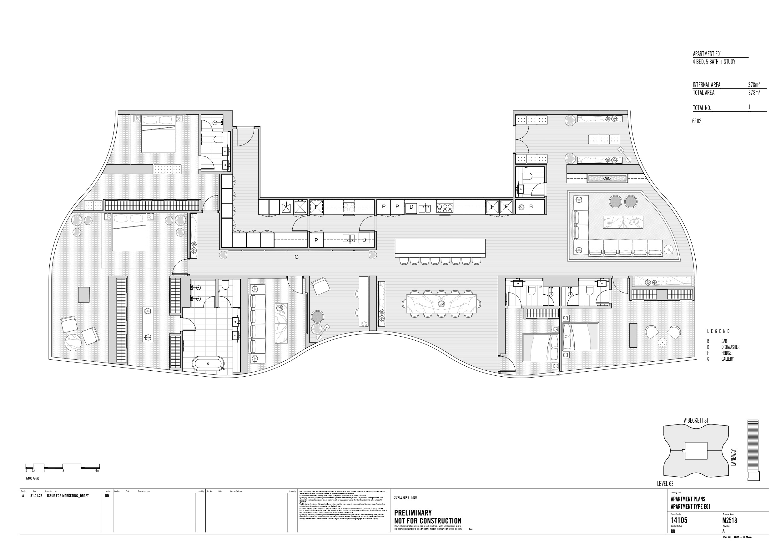UNO Melbourne hiện đã hoàn thiện với 63 tầng, tổng 700 căn hộ, chủ yếu là các căn hộ 1, 2, và 3 phòng ngủ: