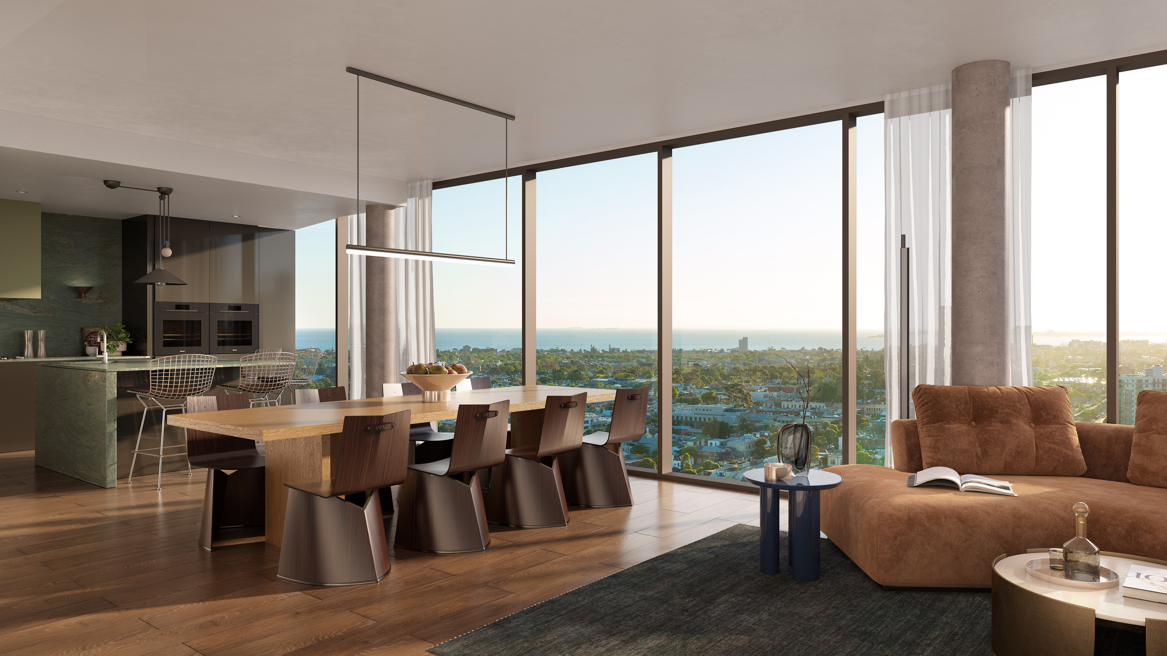 Được lấy cảm hứng từ các nguyên tắc kết nối và sự liên kết, các căn hộ tại Verdé có thiết kế không gian xuất sắc và sự chú ý đến từng chi tiết, với bảng màu tinh tế. Các hoàn thiện cao cấp bao gồm sàn gỗ sồi kỹ thuật, cửa sổ từ trần đến sàn và mặt bàn bằng đá tự nhiên.