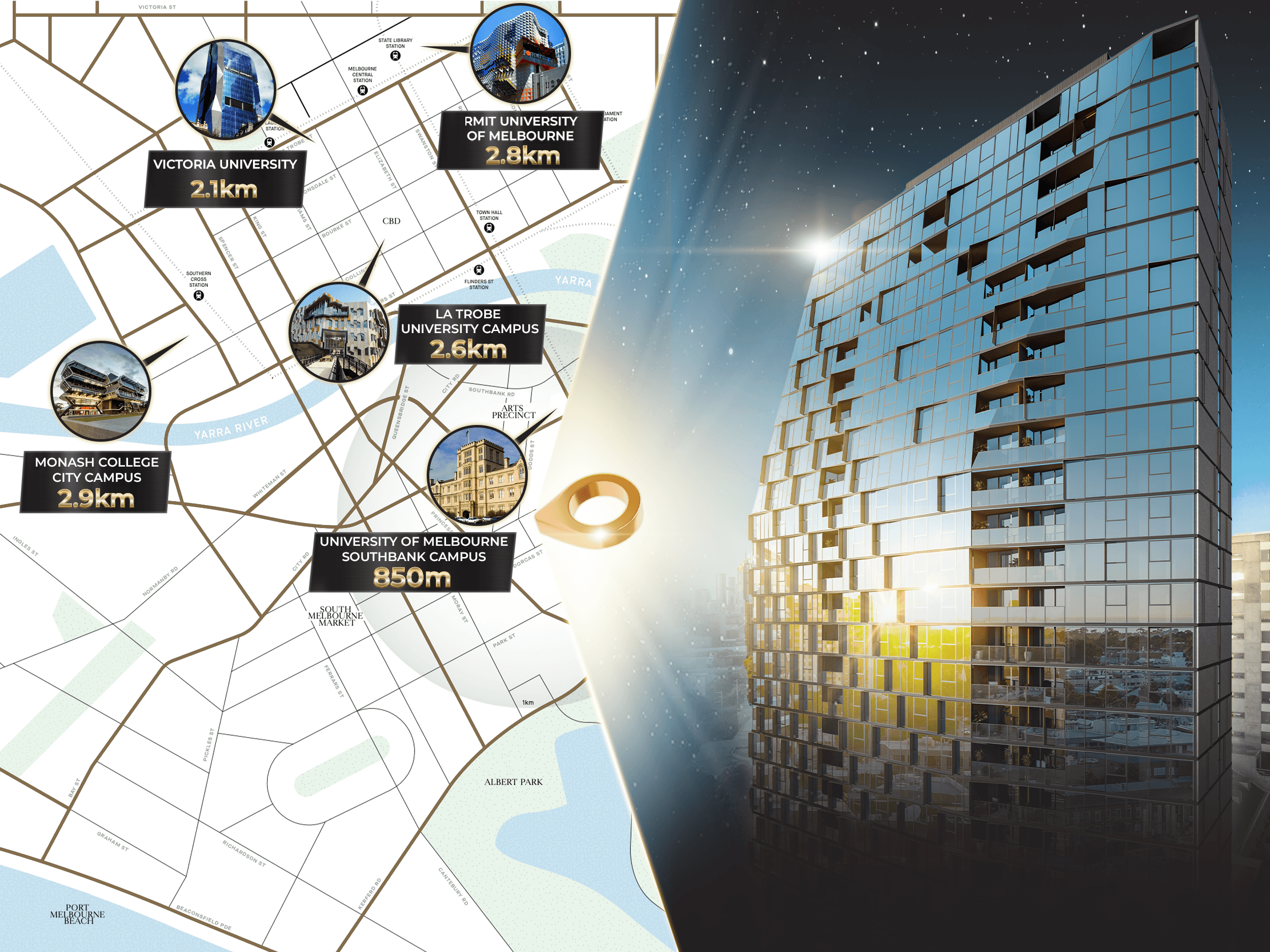 Verdé là biểu tượng mới của Southbank, nằm tại trung tâm của những gì tuyệt vời nhất mà Melbourne mang lại. Với hệ thống giao thông công cộng, nghệ thuật và thiết kế, ẩm thực và đồ uống, cùng với vị trí ngay giữa khu nghệ thuật rực rỡ của Southbank, Verdé cách mọi thứ chỉ vài bước chân.
