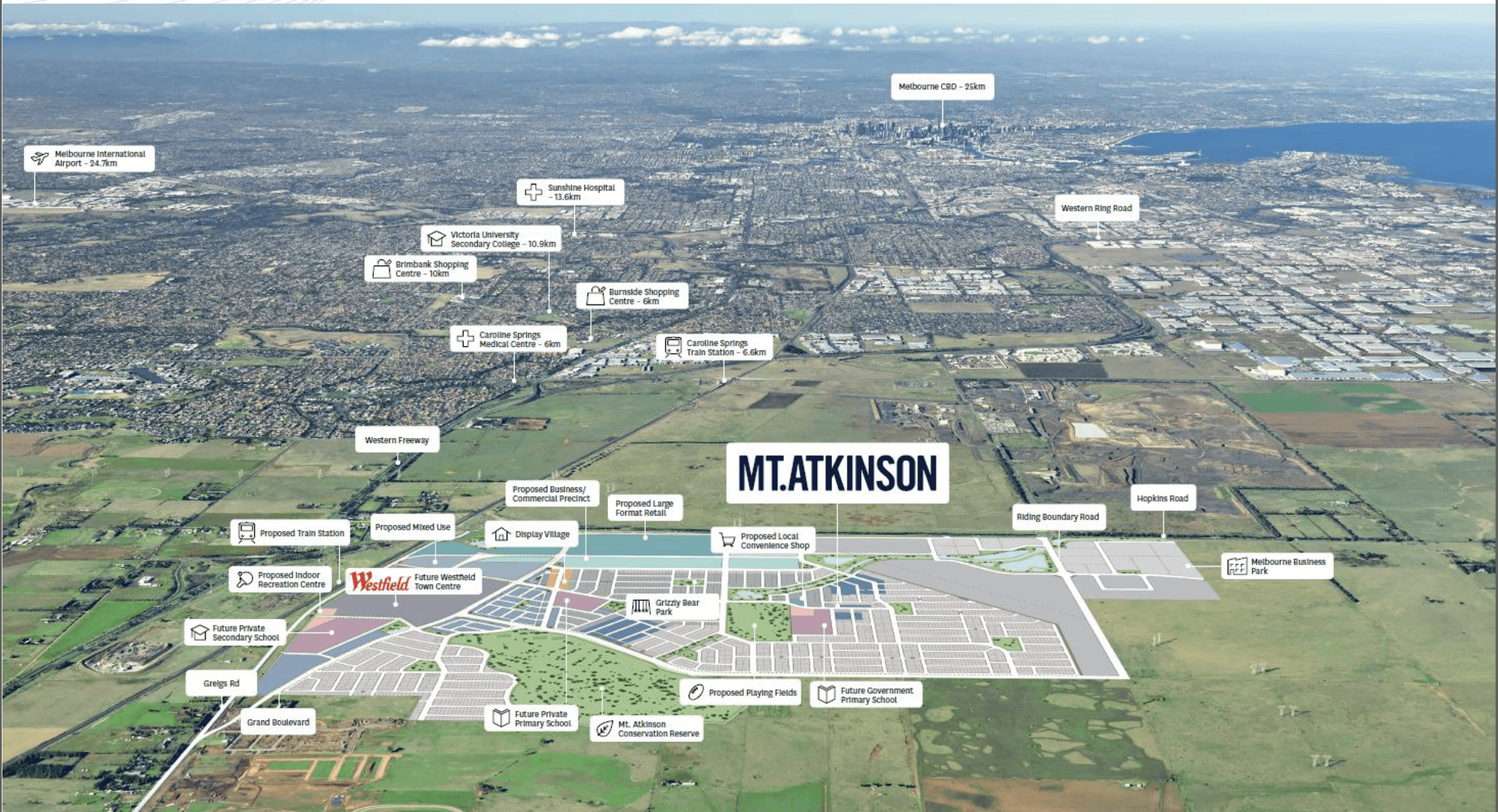 Dự án Mt. Atkinson hiện tại là một trong những dự án nhà và đất hot nhất và được săn đón nhất bởi giới đầu tư và những người dân địa phương bởi vị trí địa lý của dự án chỉ cách trung tâm thành phố Melbourne khoảng 25km và sân bay Melbourne khoảng 25km. Nằm ở phía Tây thành phố cùng loạt cơ sở hạ tầng mới đang được phát triển, dự án sẽ hoàn thành vào Q4/2024.
